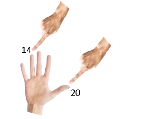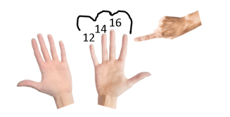 PASO 4. MANO DERECHA. Continuamos preguntando en la mano derecha así: 12, 14, 16, 18 y 20, un número por cada dedo. Repetimos hasta que no cometa errores. Una vez aprendido, preguntaremos de forma aleatoria, señalando los dedos y esperando la respuesta del niño.